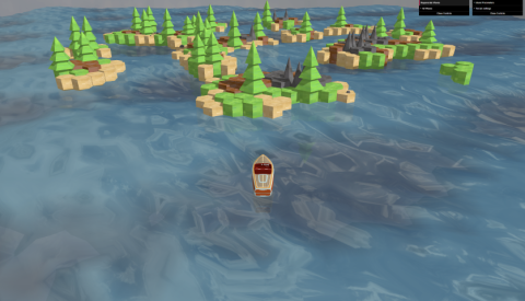 Its a physics based boat movement simulation, set atop of a small segment plane replicating realistic wave motion using Gerstner's wave (also reflections via Fresnel's effect). This plane also contains the procedurally generated islands that are generated upon launch. Both islands and the waves can be adjusted via the parameter window in the top right of the screen.